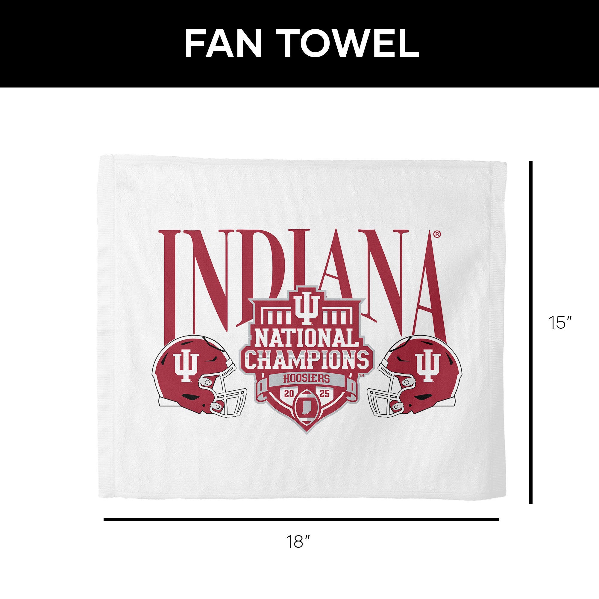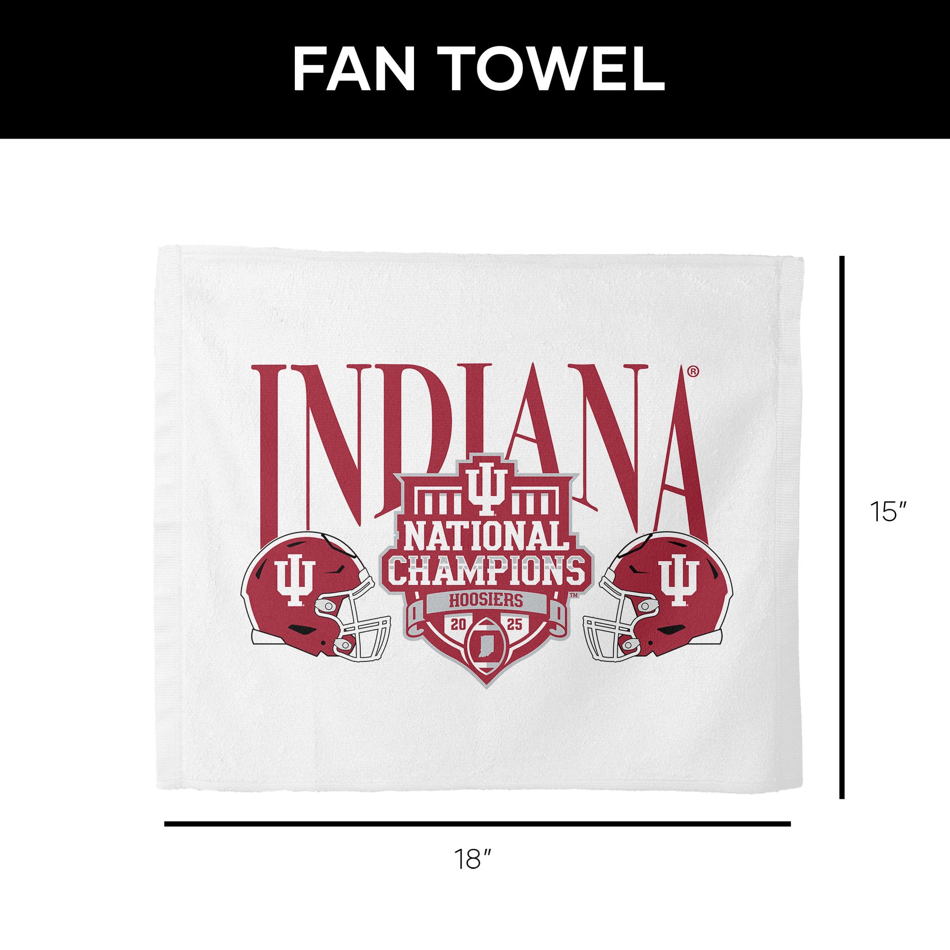 Claim the celebration when victory is secured with the Indiana Hoosiers NCAA 2025 FBC “Clincher” Rally Towel, created for fans who thrive on championship moments. An Officially Licensed design features bold Indiana lettering, iconic helmet graphics, and “National Champions” Hoosiers artwork that captures the excitement of a title-winning season, all on a lightweight towel made for waving, cheering, and energizing the crowd. Strong contrast and classic team colors ensure Hoosier pride stands out from every angle. Ready for big plays, final whistles, watch parties, and tailgates, this rally towel brings nonstop intensity to every game-day experience. Easy to carry and built for action, it’s a spirited essential for dedicated fans and a fun gift for Indiana supporters, alumni, and collectors celebrating a true clincher moment.