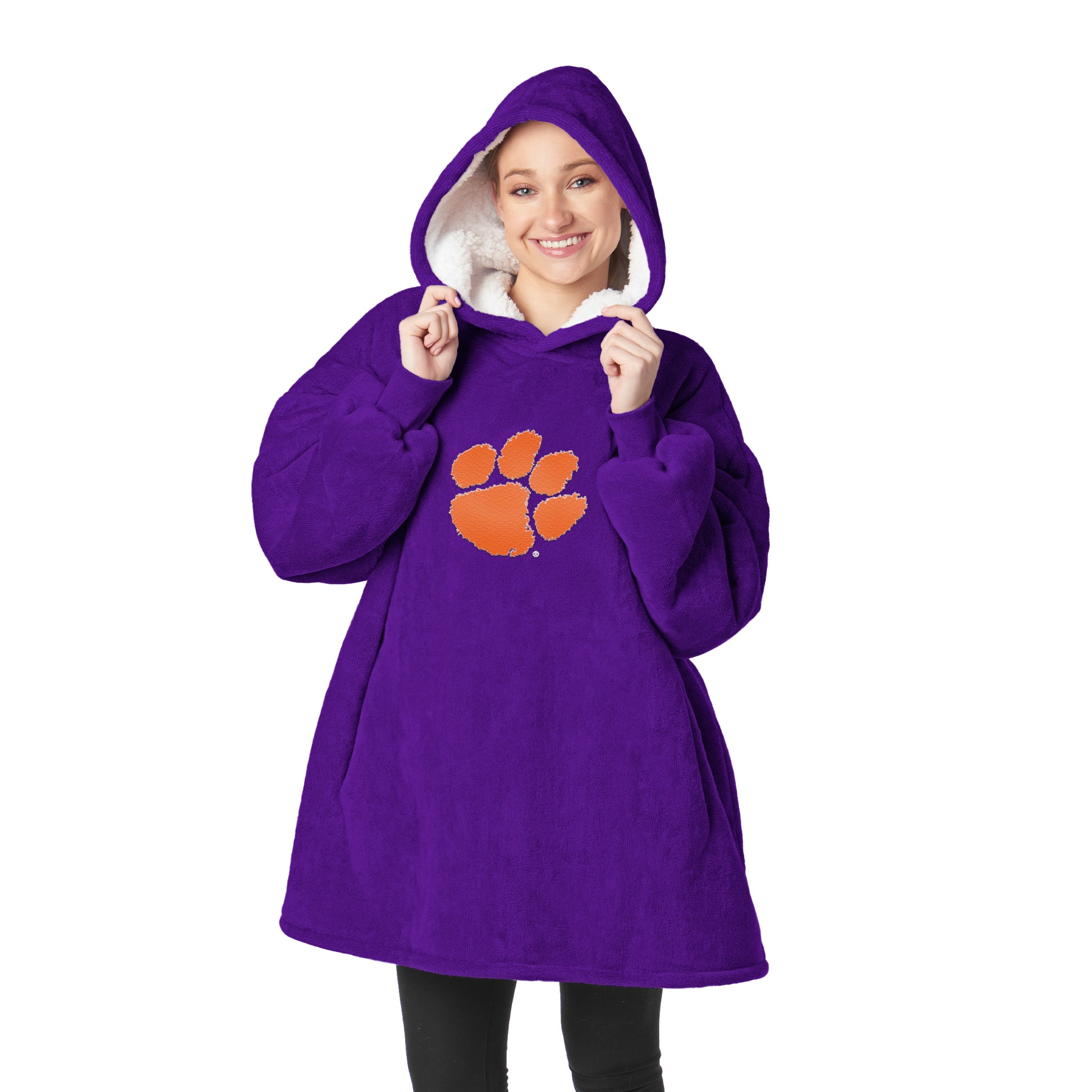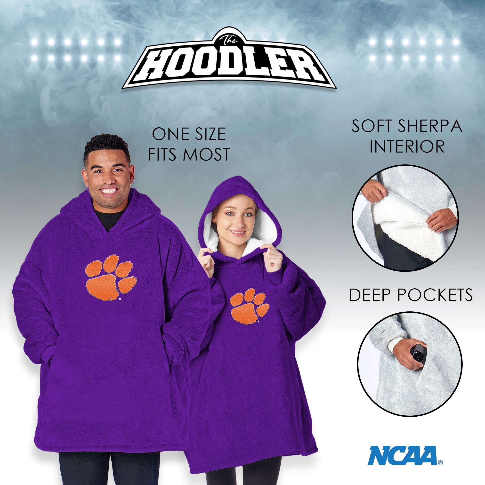 Wrap yourself in ultimate comfort with the NCAA “Hoodler” Pullover Hoodie. This oversized hoodie is designed for cozy moments, with a sherpa-lined interior that feels like you’re wearing a soft, warm blanket. Pairs perfectly with your favorite lounge attire or game-day outfit. With a large front pocket, you can easily keep your hands warm or stash your phone and snacks while you enjoy some downtime. Whether you’re watching the game, running errands, or just relaxing at home, this hoodie is made for maximum comfort without sacrificing style. Officially licensed and proudly featuring your team logo, this hoodie shows off your school spirit wherever you go. Whether you’re cheering from the couch or hanging out with friends, this Hoodie has you covered. Makes a perfect gift for students, alumni, or die-hard fans who love to stay warm while repping their team.
