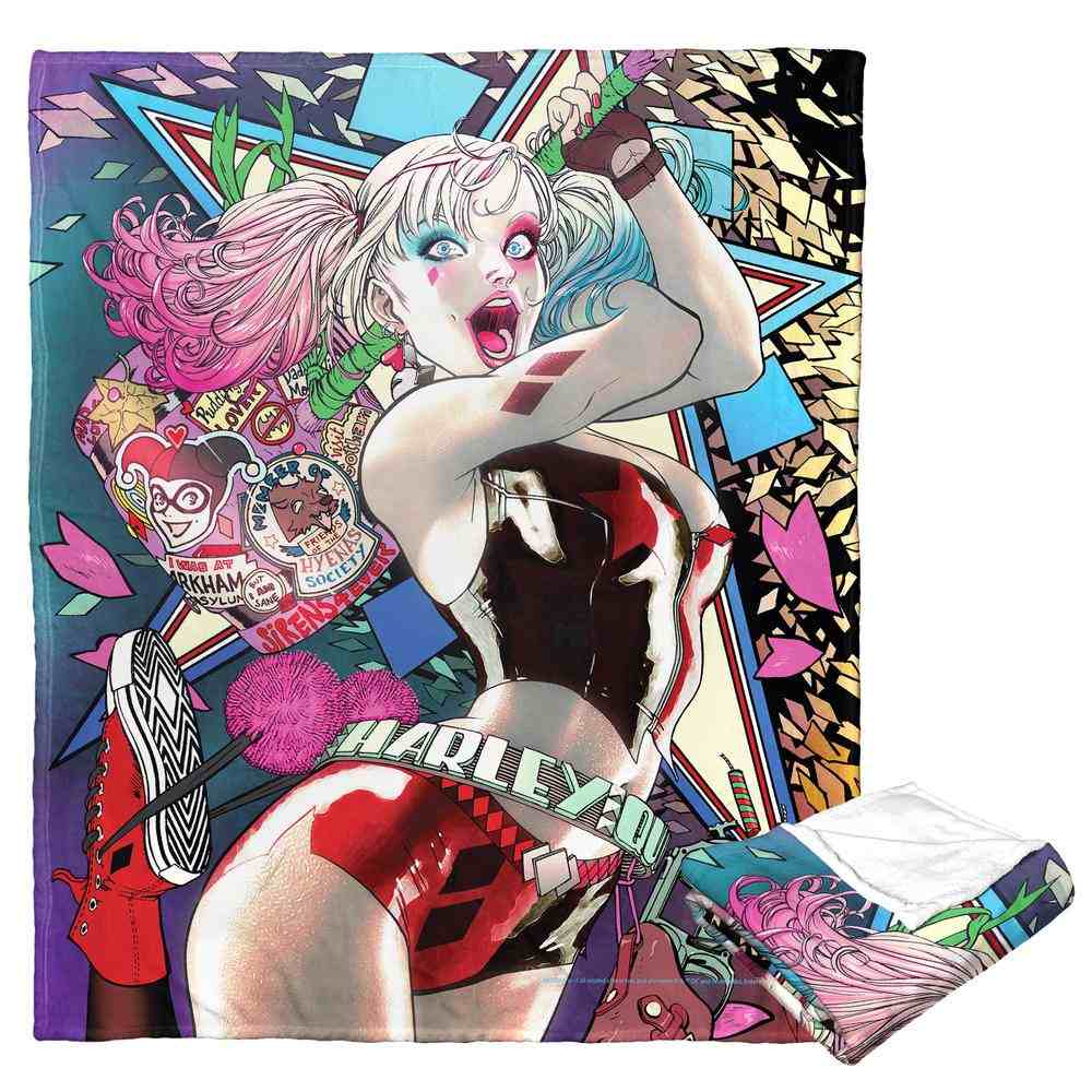 - Features colorful retro-style artwork of Birds of Prey squad leader Harley Quinn