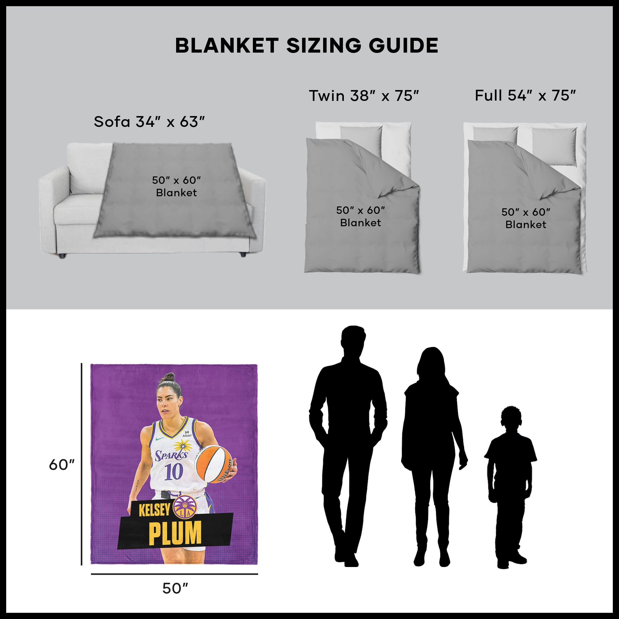 Los Angeles Sparks Kelsey Plum Silk Touch Throw Blanket 50×60 inches