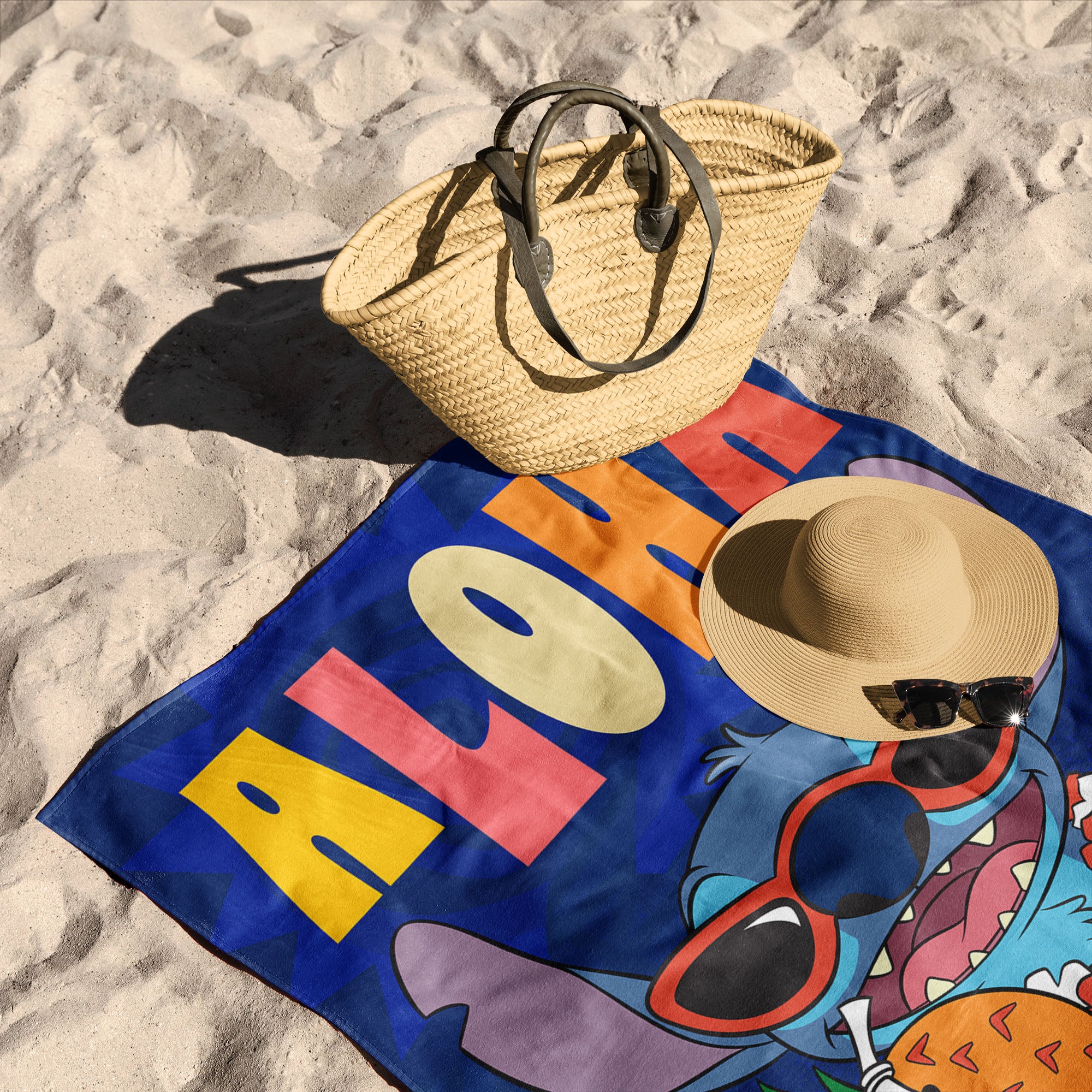 Bring island vibes and playful style to your next beach or pool day with the Lilo & Stitch Tropic Microfiber Beach Towel. The vibrant tropical-inspired design with your favorite team's logo and Stitch enjoying a sunny getaway adds a fun and colorful touch to any outdoor adventure. Made from lightweight microfiber, this towel is soft, absorbent, and quick-drying—perfect for drying off after a swim or relaxing in the sun. The smooth fabric feels comfortable against the skin while the generous size provides plenty of space for lounging at the beach, pool, lake, or water park. Easy to fold and pack, it’s a great companion for vacations, summer outings, or everyday poolside fun.
