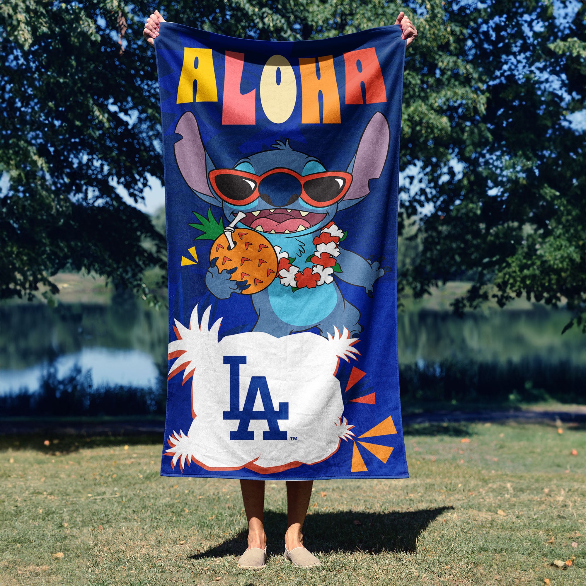 MLB Los Angeles Dodgers Disney Lilo & Stitch Tropic Royal Microfiber Beach Towel 30x60 inches
