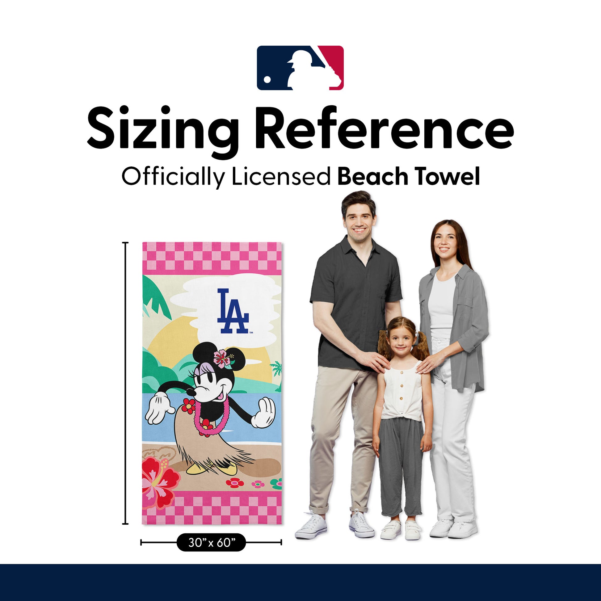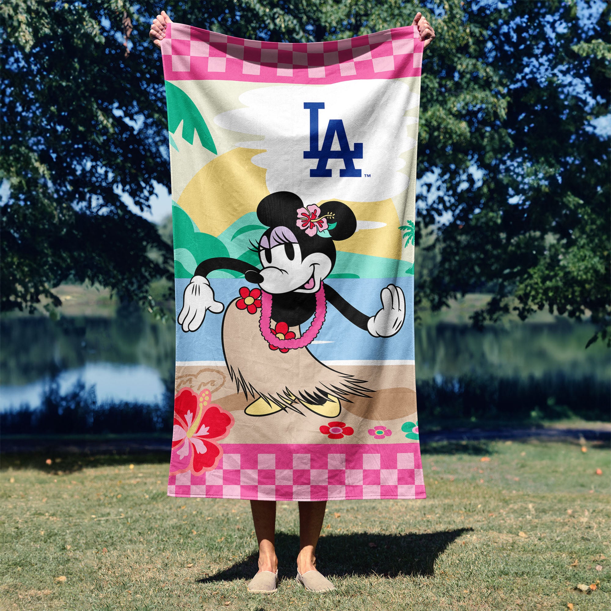 MLB Los Angeles Dodgers Disney Minnie Mouse Beachy Check Pink Microfiber Beach Towel 30x60 inches