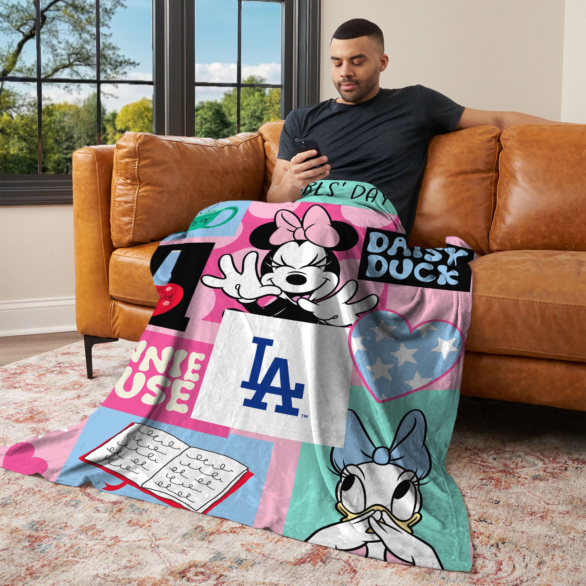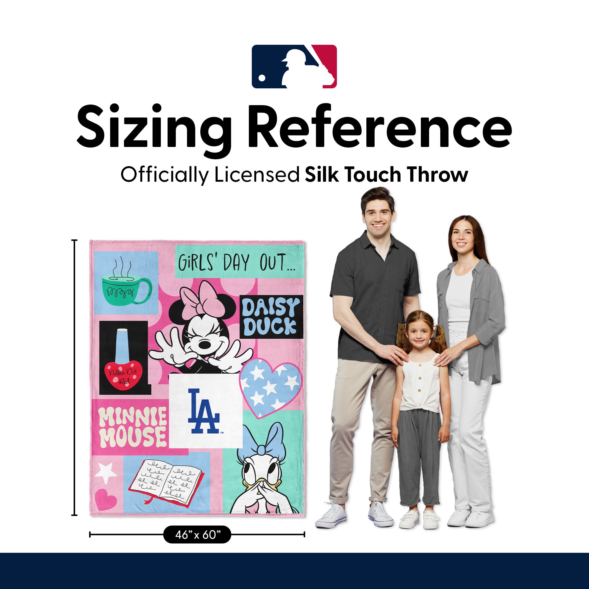 Add a touch of fun, color, and cozy comfort to any space with the Minnie Mouse Checker Floral Silk Touch Throw Blanket. The playful collage-style design featuring Minnie Mouse, Daisy Duck, and your favorite sport team's logo brings bright personality and charm to bedrooms, and playrooms. Crafted from ultra-soft silk touch fabric, this throw blanket offers a smooth and cozy feel that’s perfect for snuggling on the couch, watching your favorite shows, or adding a stylish decorative accent to a bed or chair. The lightweight yet warm material makes it great for year-round comfort while showcasing cheerful graphic elements. Whether you're decorating or looking for a thoughtful gift, this blanket combines comfort, color, and classic Disney sweetness.