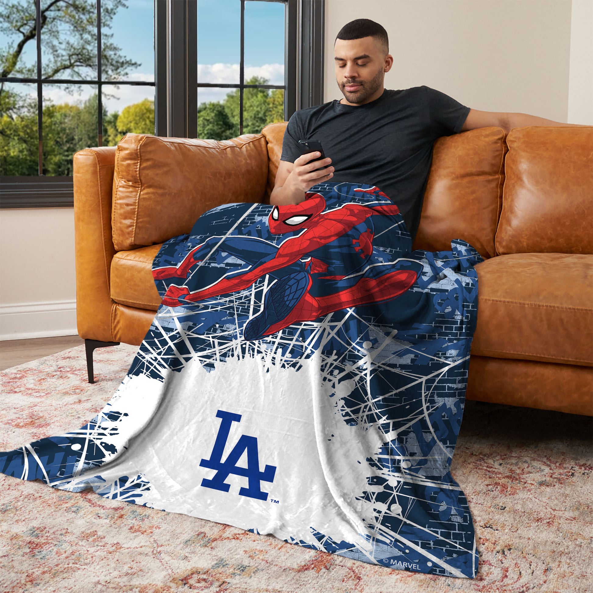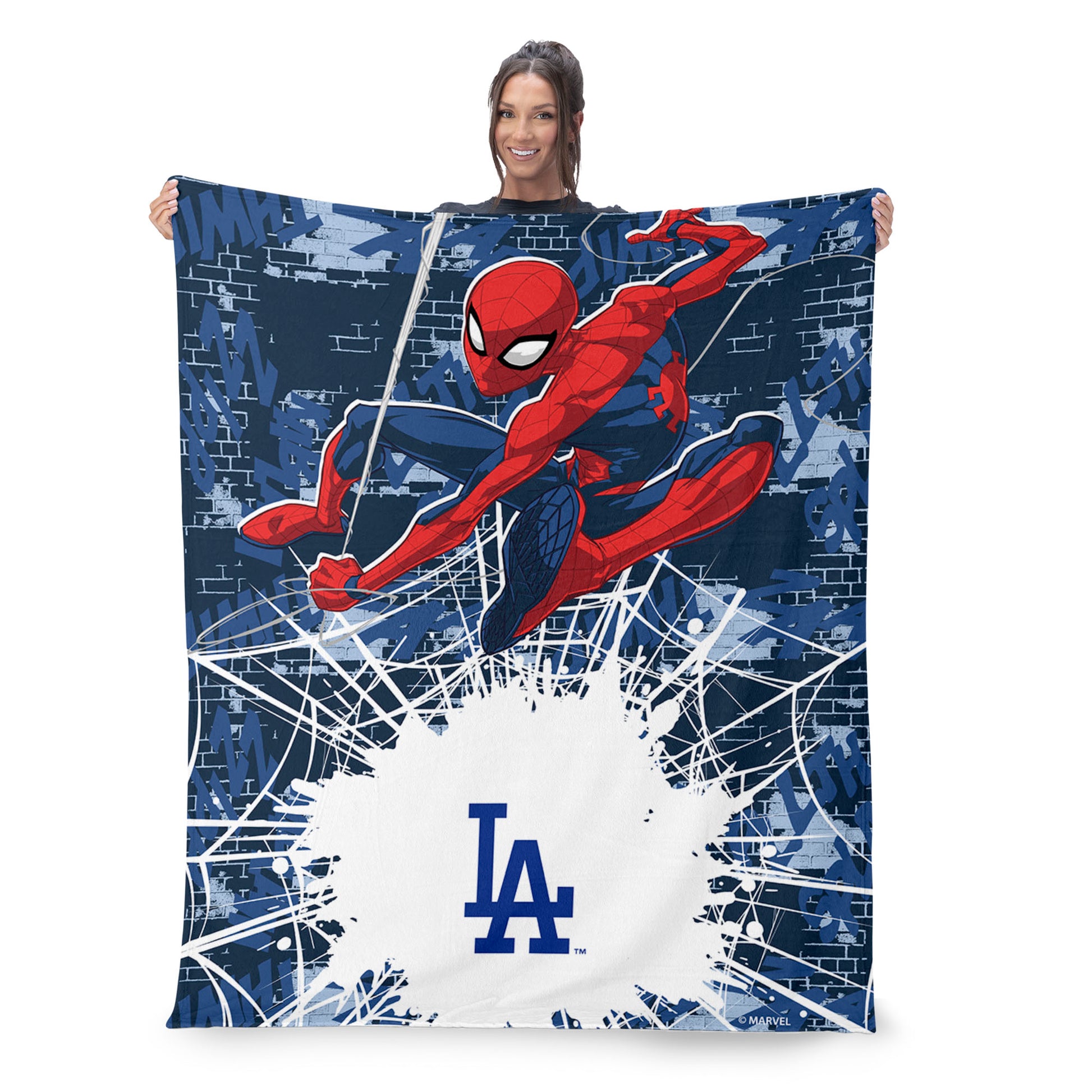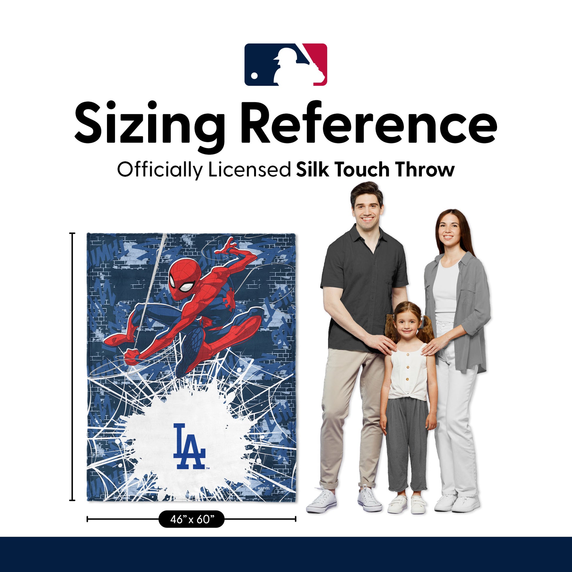 MLB Los Angeles Dodgers Marvel Spider Man Web Sling Navy Silk Touch Throw Blanket 46x60 inches