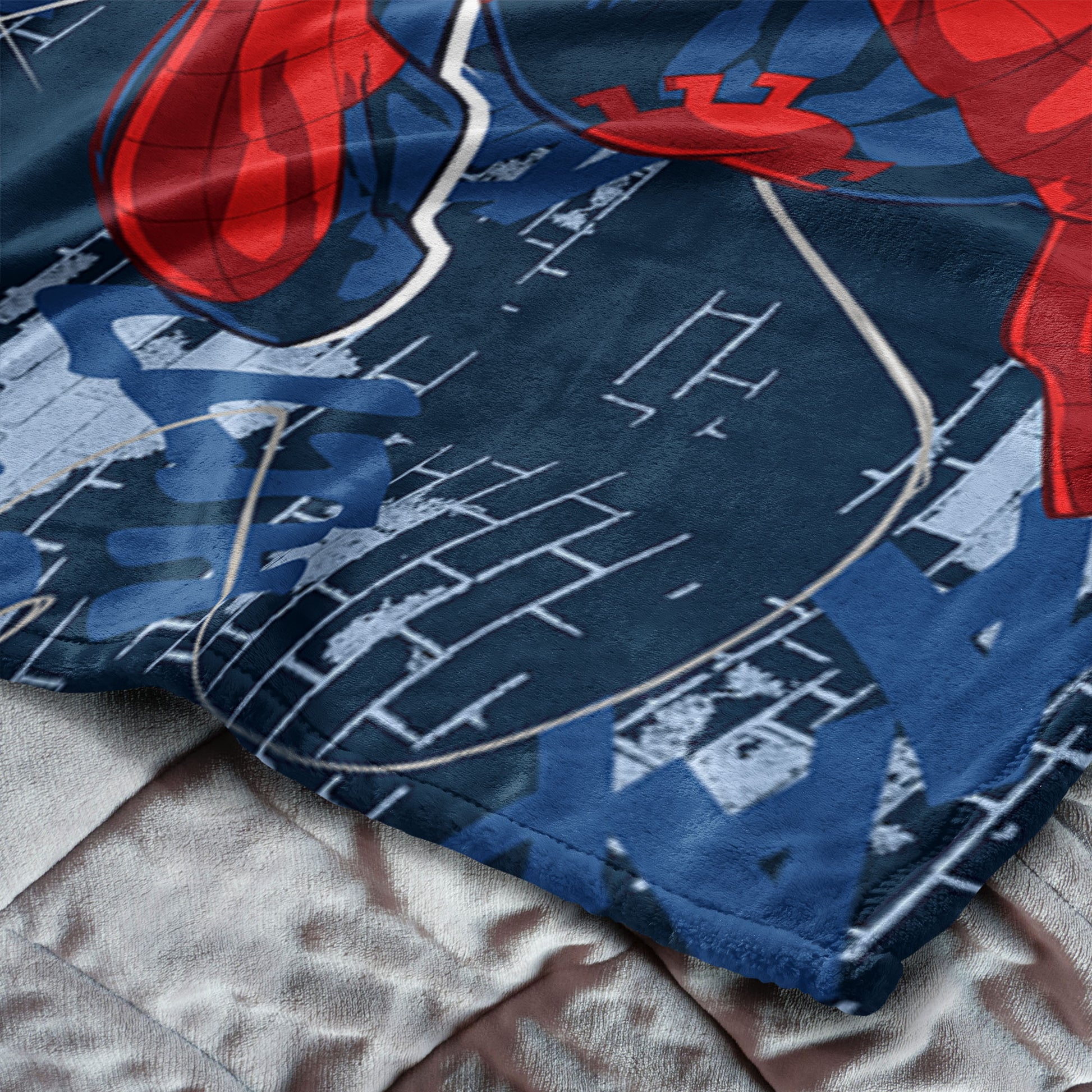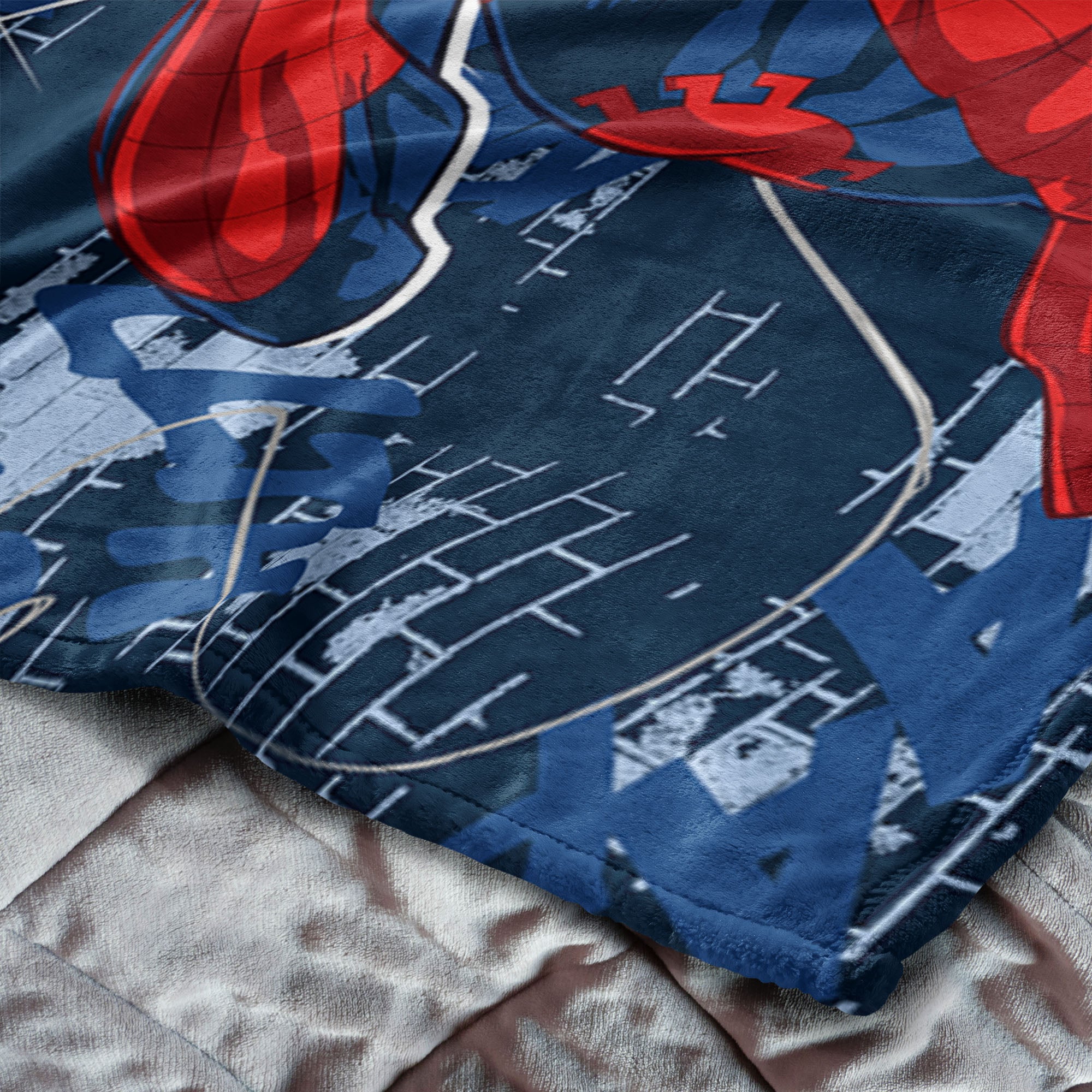 Bring action-packed style and cozy comfort to any room with the Spider-Man Web Sling Silk Touch Throw Blanket. Featuring an exciting design of Spider-Man swinging through a web-filled cityscape along with your favorite sports team's logo, this blanket adds heroic energy and bold style to bedrooms, game rooms, or movie nights. This throw blanket provides a smooth, comfortable feel that’s perfect for winding down after a busy day of fun and adventure. The lightweight yet warm material makes it ideal for year-round comfort while showcasing vibrant character art that fans will love. This ultra-soft silk touch throw blanket makes the perfect gift for Spider-Man and sports fans.