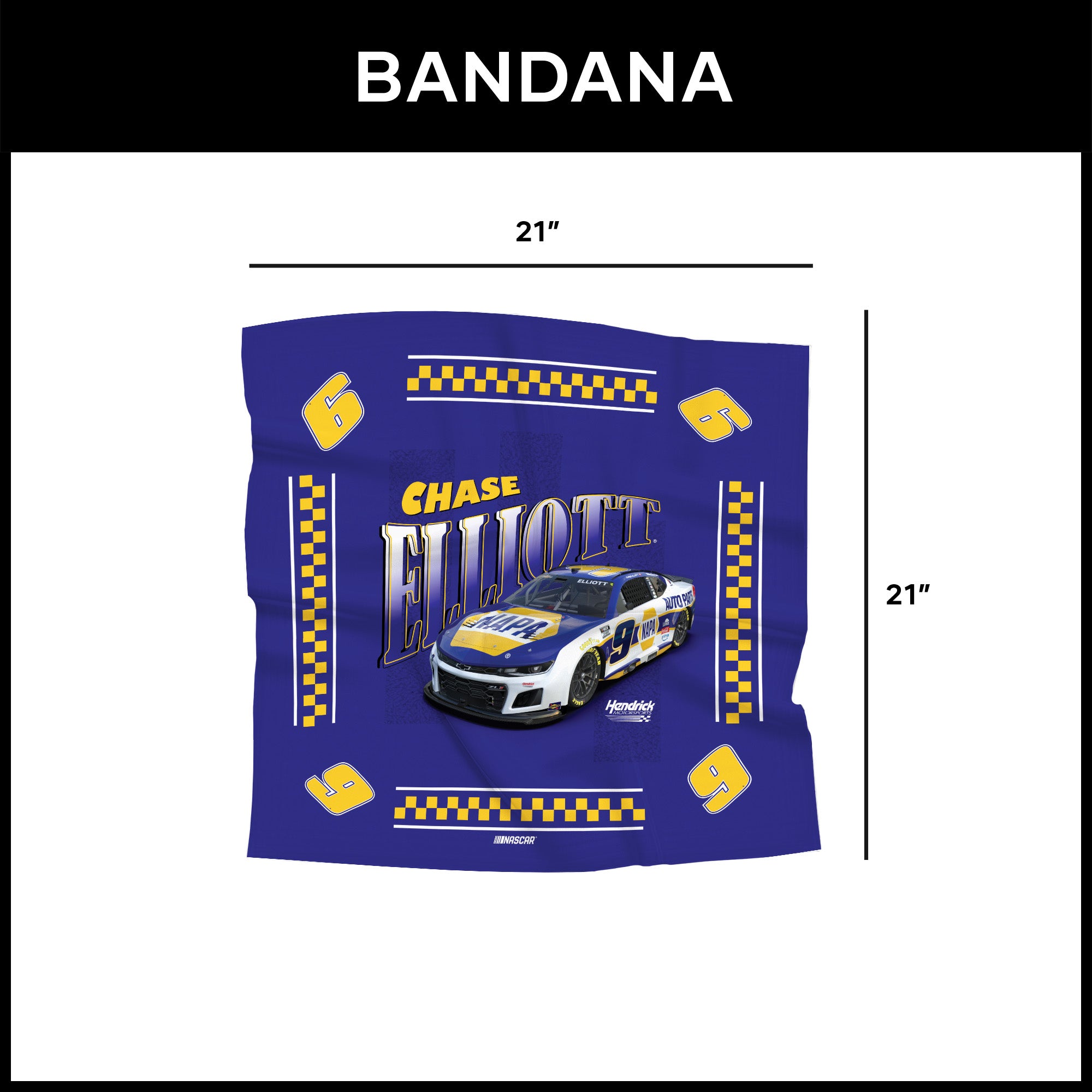 NASCAR Chase Elliott Napa Whimsical Checks Bandana 21x21 inches