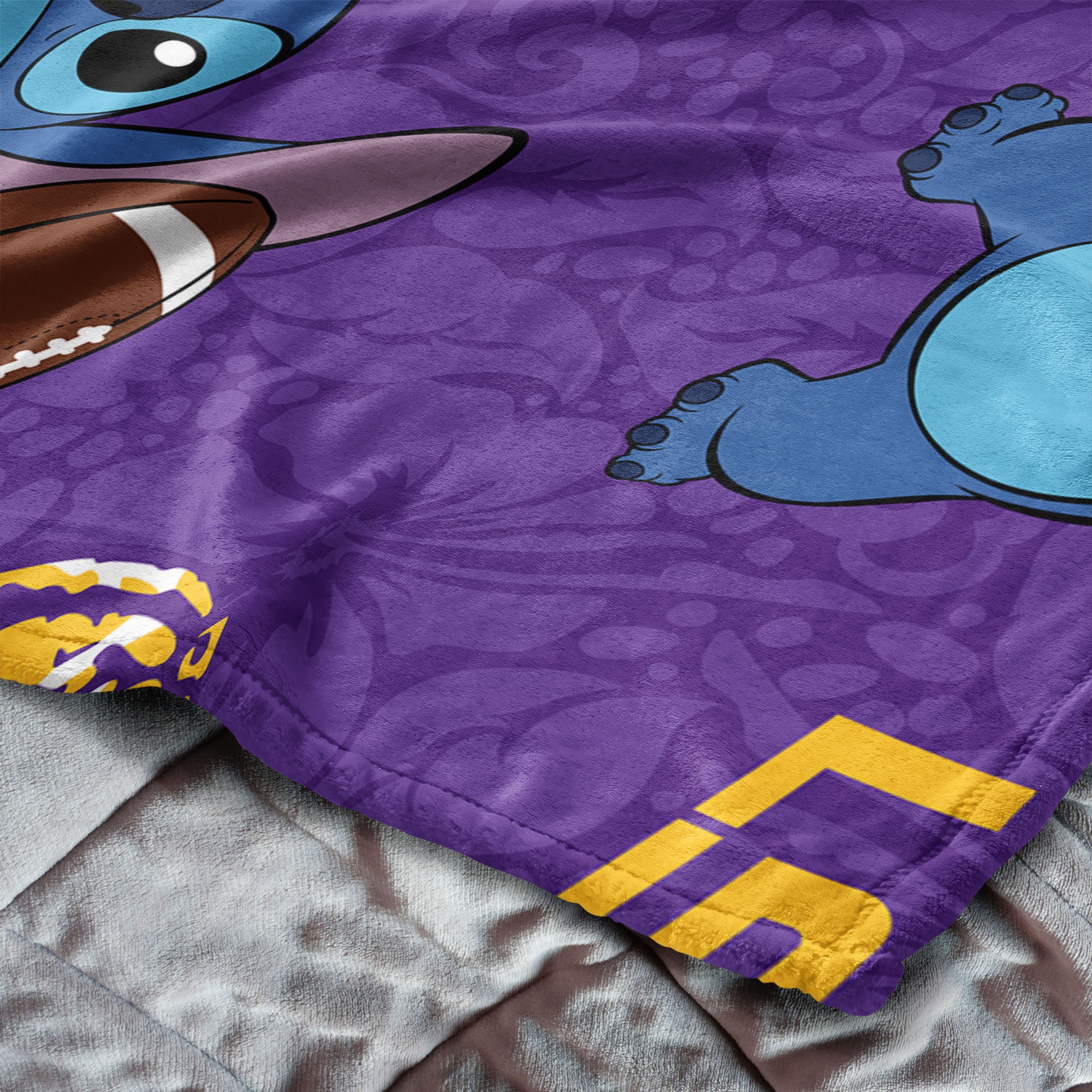 • Features an ultra-huggable Stitch character pillow and super-soft throw that showcases the lovable alien in playful football poses alongside your favorite officially licensed college team logos.