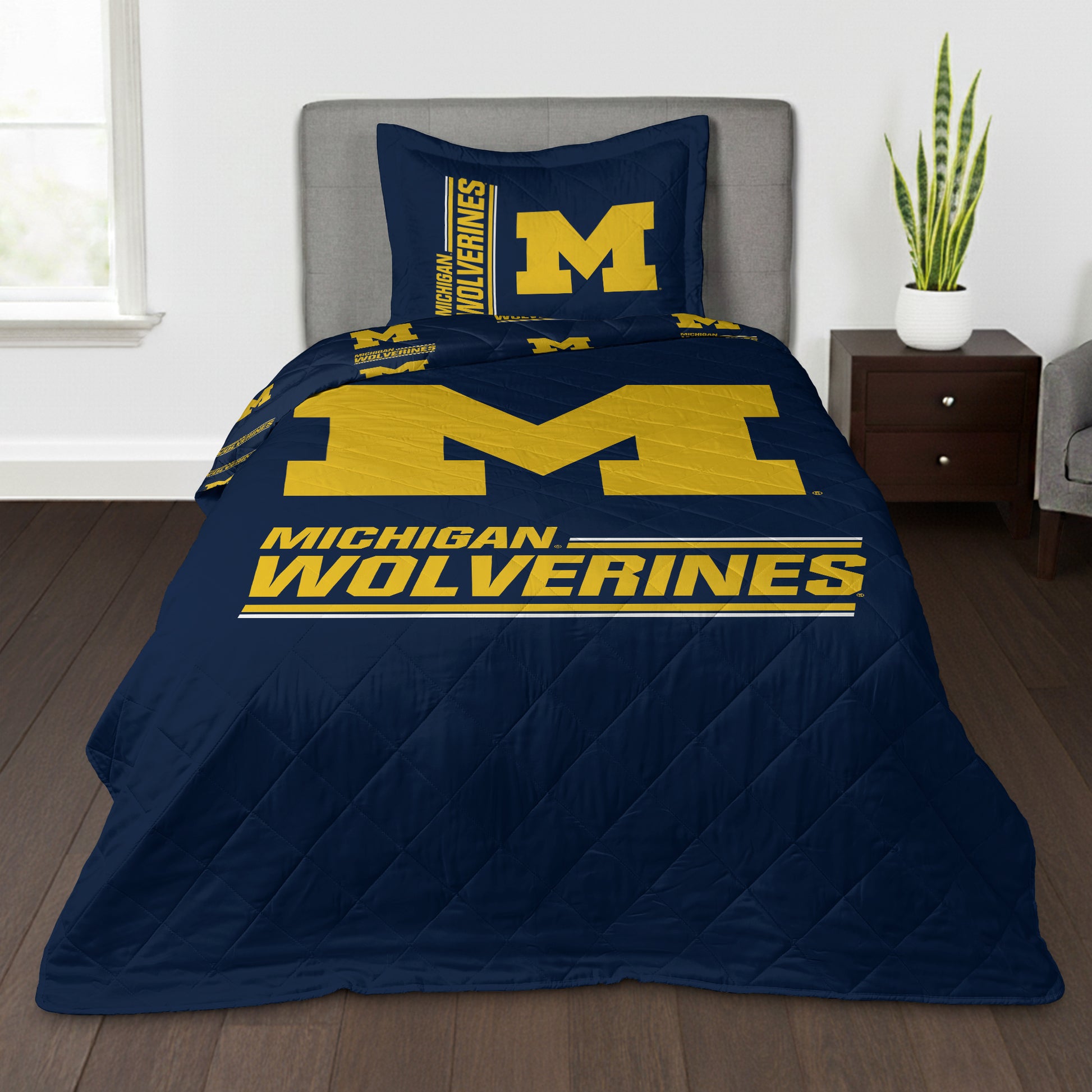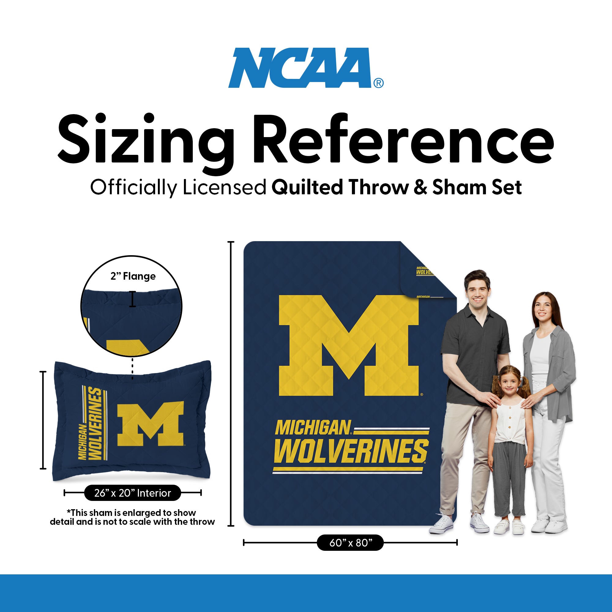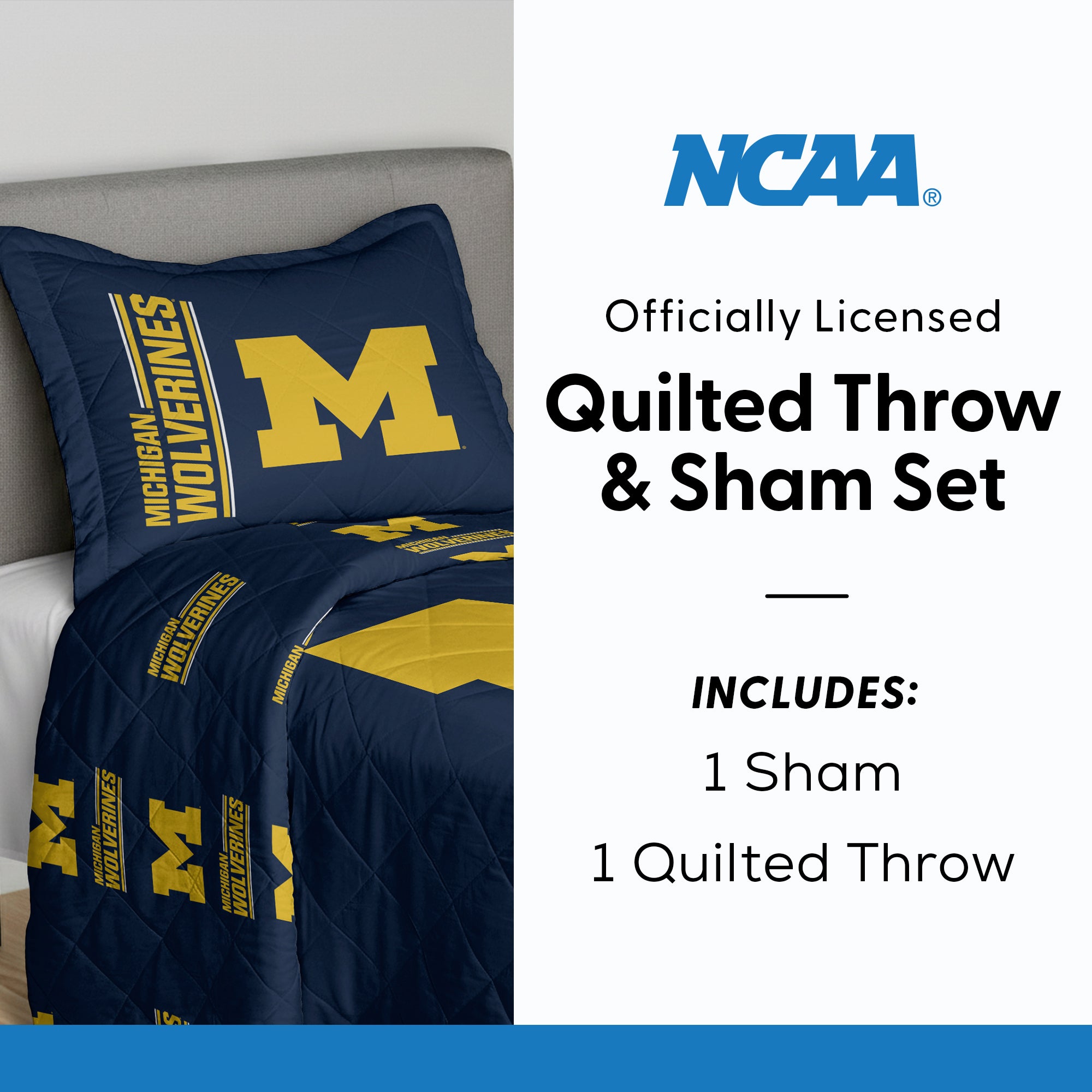 NCAA University of Michigan Wolverines Summarize Quilted Throw Blanket and Sham Set 60×90 inches