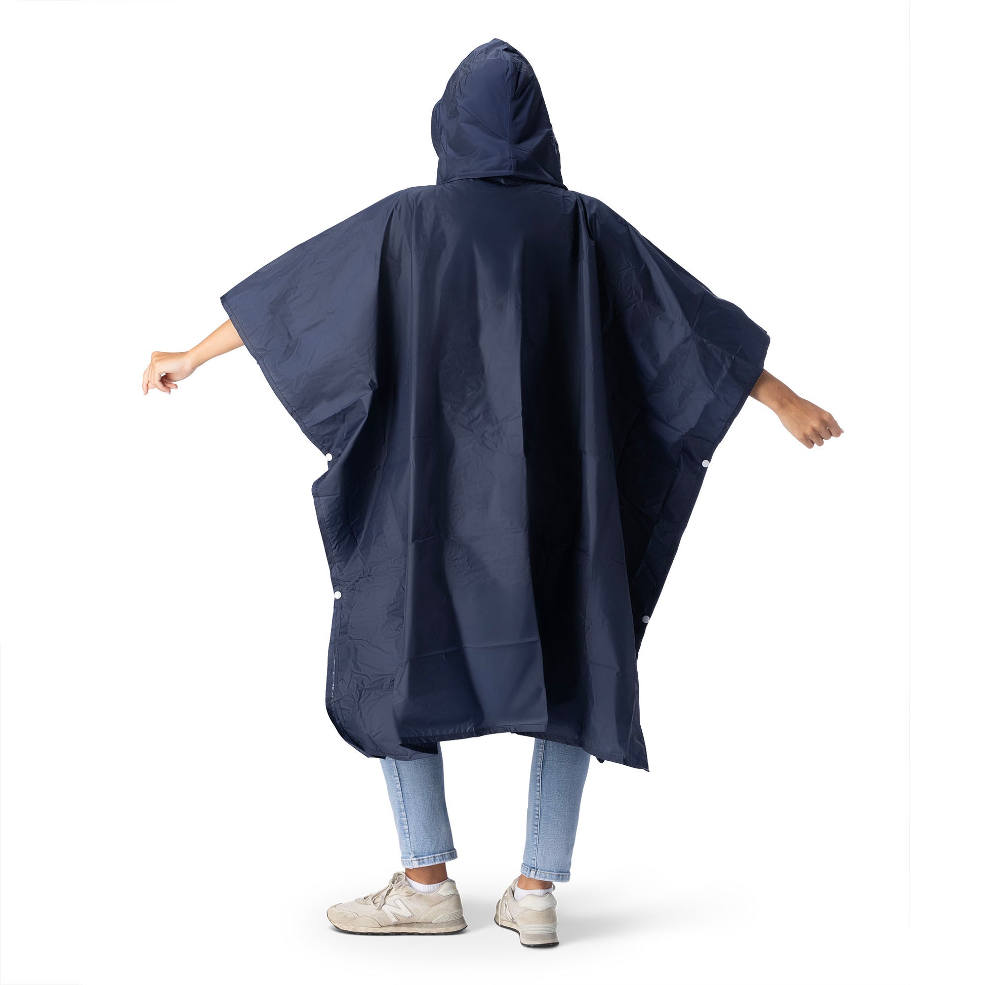 • Features a drawstring hood for rain protection, side snaps for easy on and off, and water-resistant fabric, the poncho also packs neatly into a mesh pouch for convenient storage.