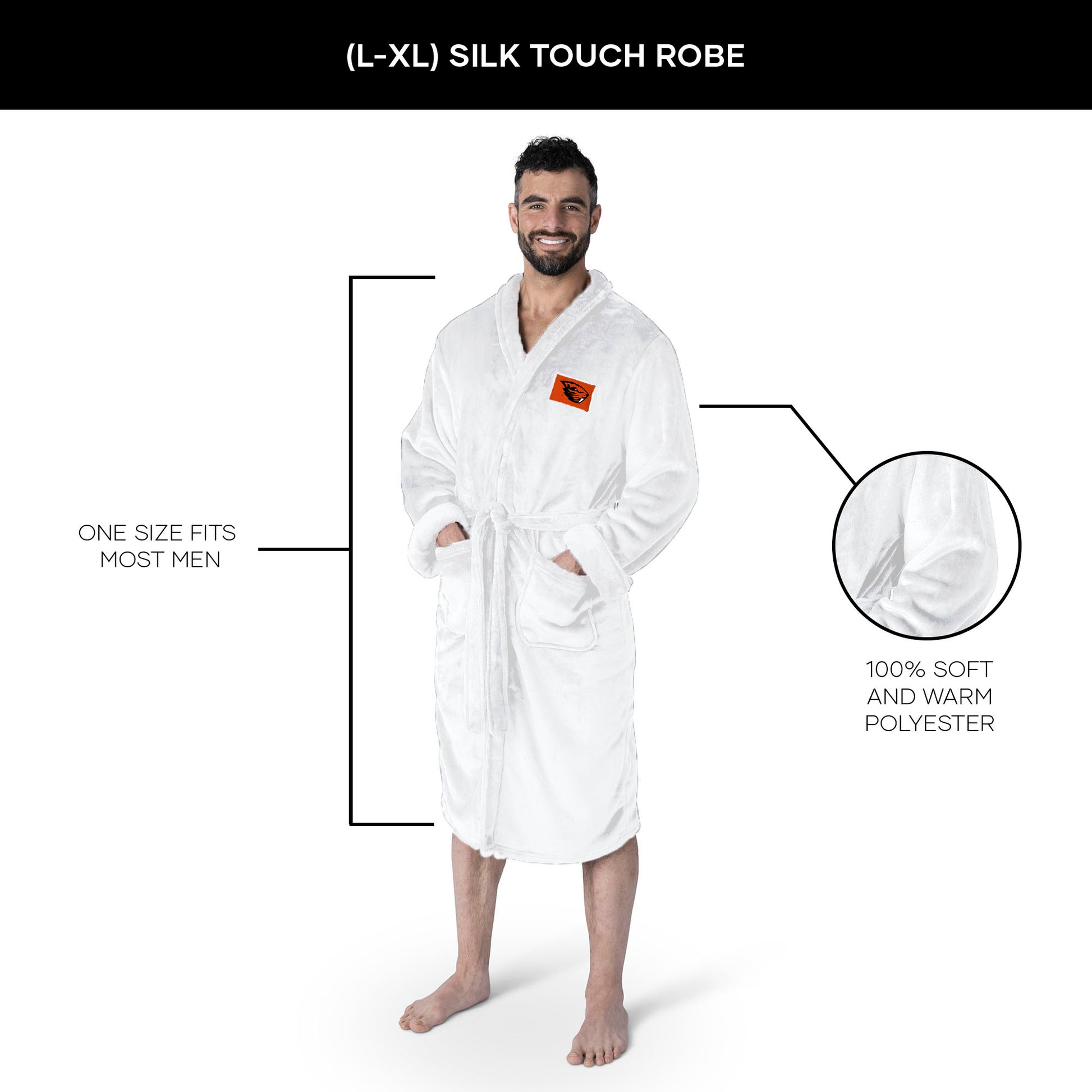 Wrap yourself in comfort and team pride with our NCAA Silk Touch Bathrobe. Made from incredibly silky-soft material, this robe provides a luxurious feel that’s perfect for lounging or getting ready in style. It includes two front patch pockets for convenience, along with a tie belt and two belt loops on each side for a customized fit. Show your support for your favorite NCAA team with this officially licensed robe featuring their logo. Whether you’re cheering from the couch or getting ready for game day, this robe is the perfect way to display your team spirit.