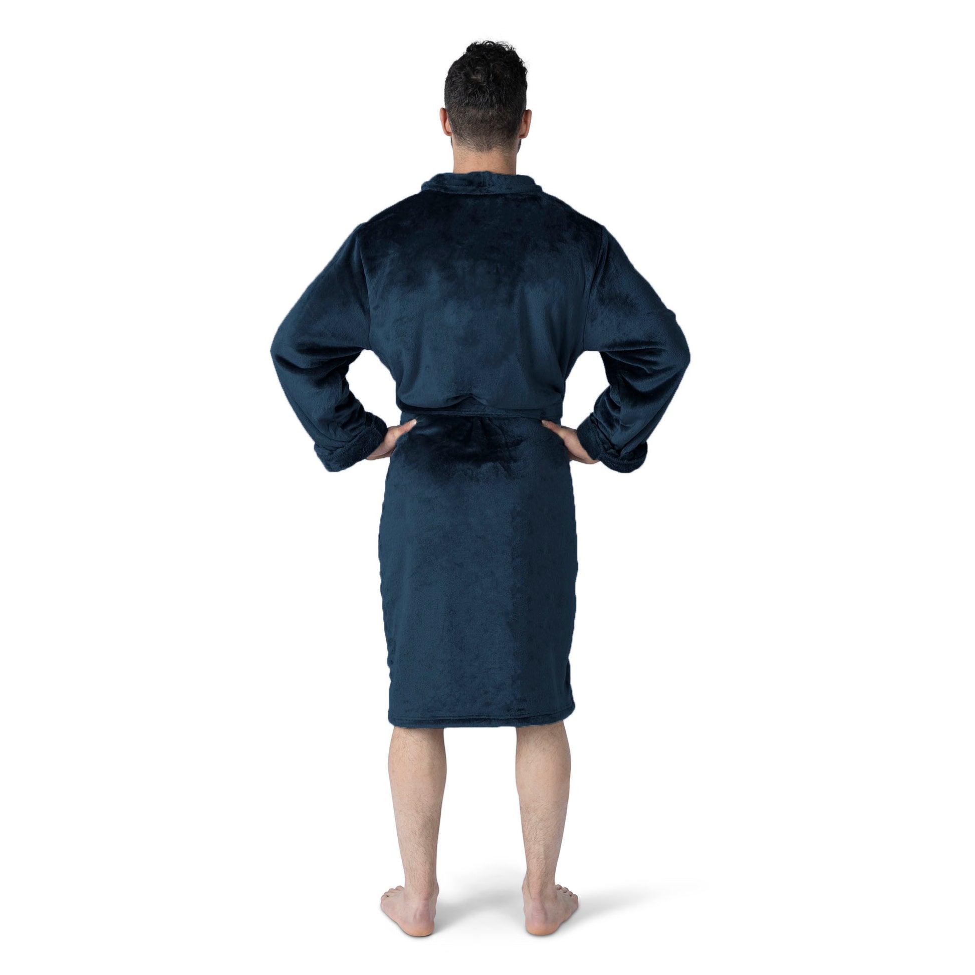 • Featuring ultra-soft silk-touch fabric, a cozy shawl collar, adjustable tie belt, roomy front pockets, and an embroidered team logo at the chest.