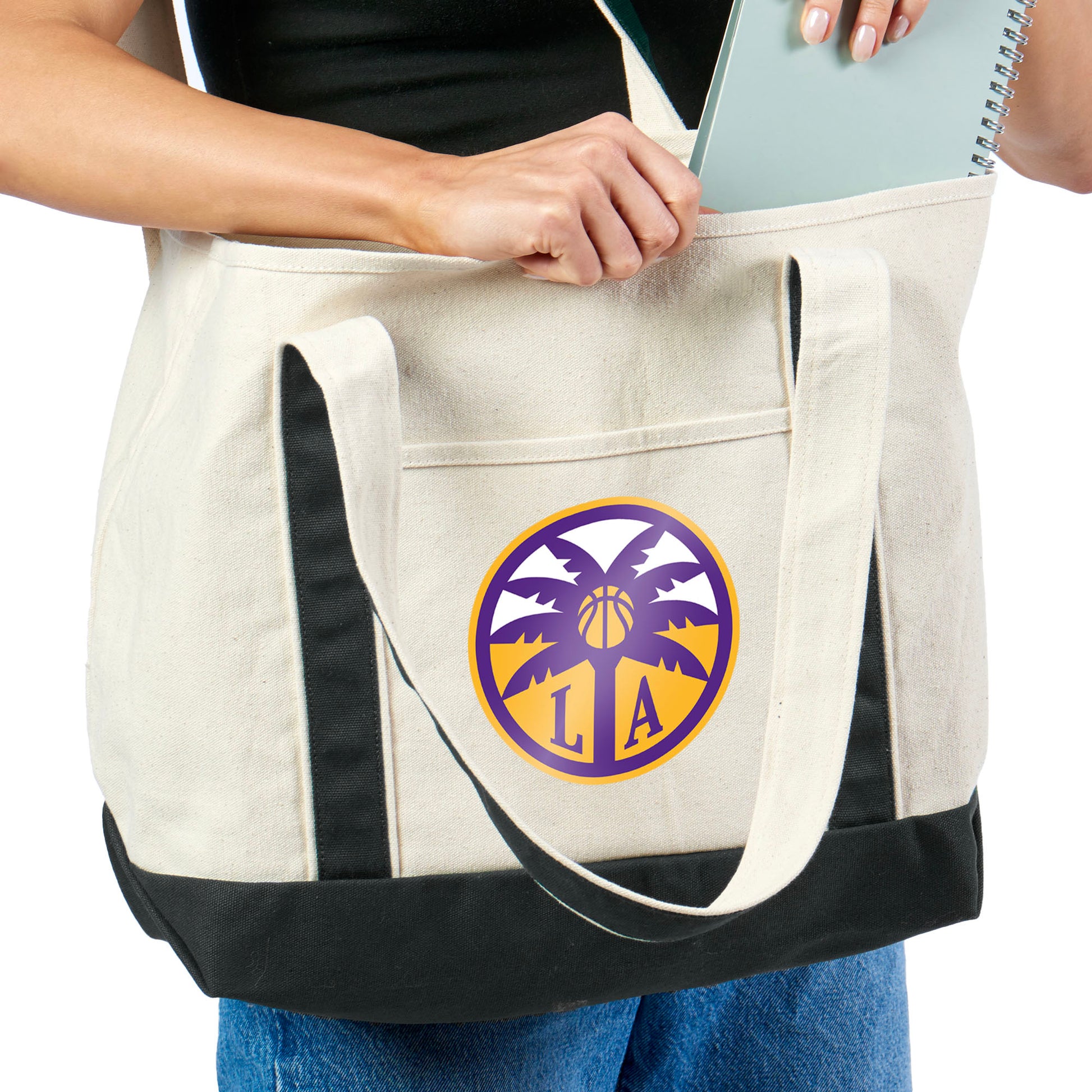 Game-day ready style meets everyday hustle with the WNBA "Logo" Canvas Tote with Colored Strap, featuring durable natural canvas, bold team colors, a reinforced contrast bottom, a spacious open interior for everyday or game-day essentials, and a clean front panel that proudly highlights your team logo. From arena seats to errands around town, this tote brings effortless team spirit wherever you go. Officially Licensed and made for fans who love practical style, its a standout gift for die-hard supporters, casual fans, or anyone who wants to carry their WNBA pride loud and proudperfect for birthdays, holidays, or just because.